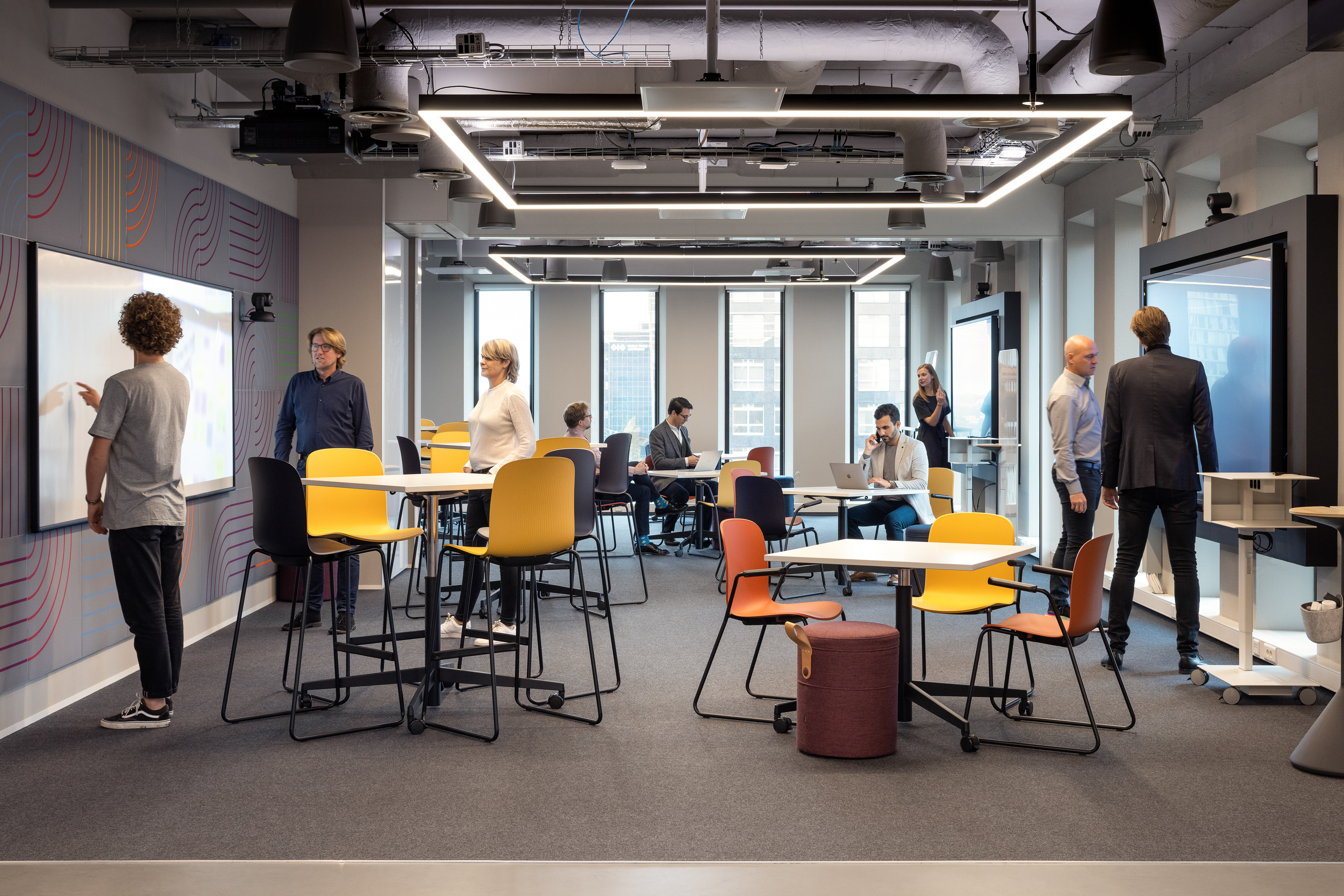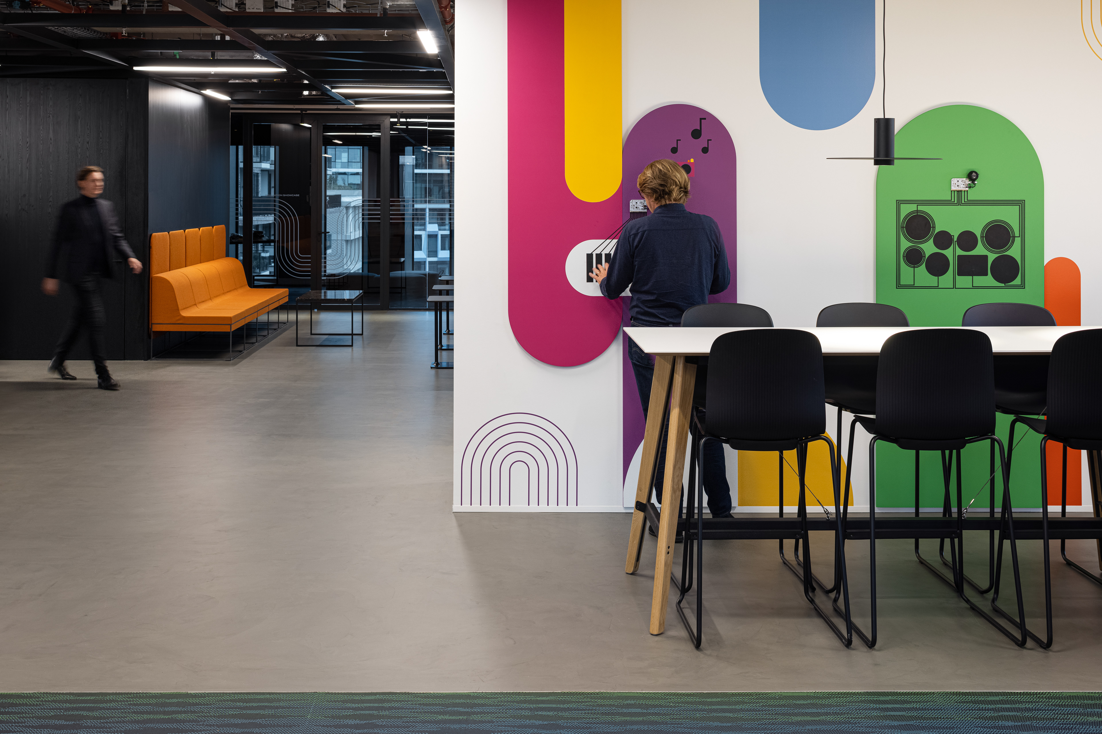 The goal was to design a distinctive, customer-facing environment that enables TCS’s clients for rapid transformation and innovation. Experiences reflect each step of the customer engagement: Explore, Engage, and Execute. Embodying the TCS Pace brand, a highly flexible space which is partly reconfigurable supports distributed agile ways of working. The centre includes 4 key design features: The Innovation Showcase, Agile Development Labs, Collaboration and Think Space and the Maker Space.
